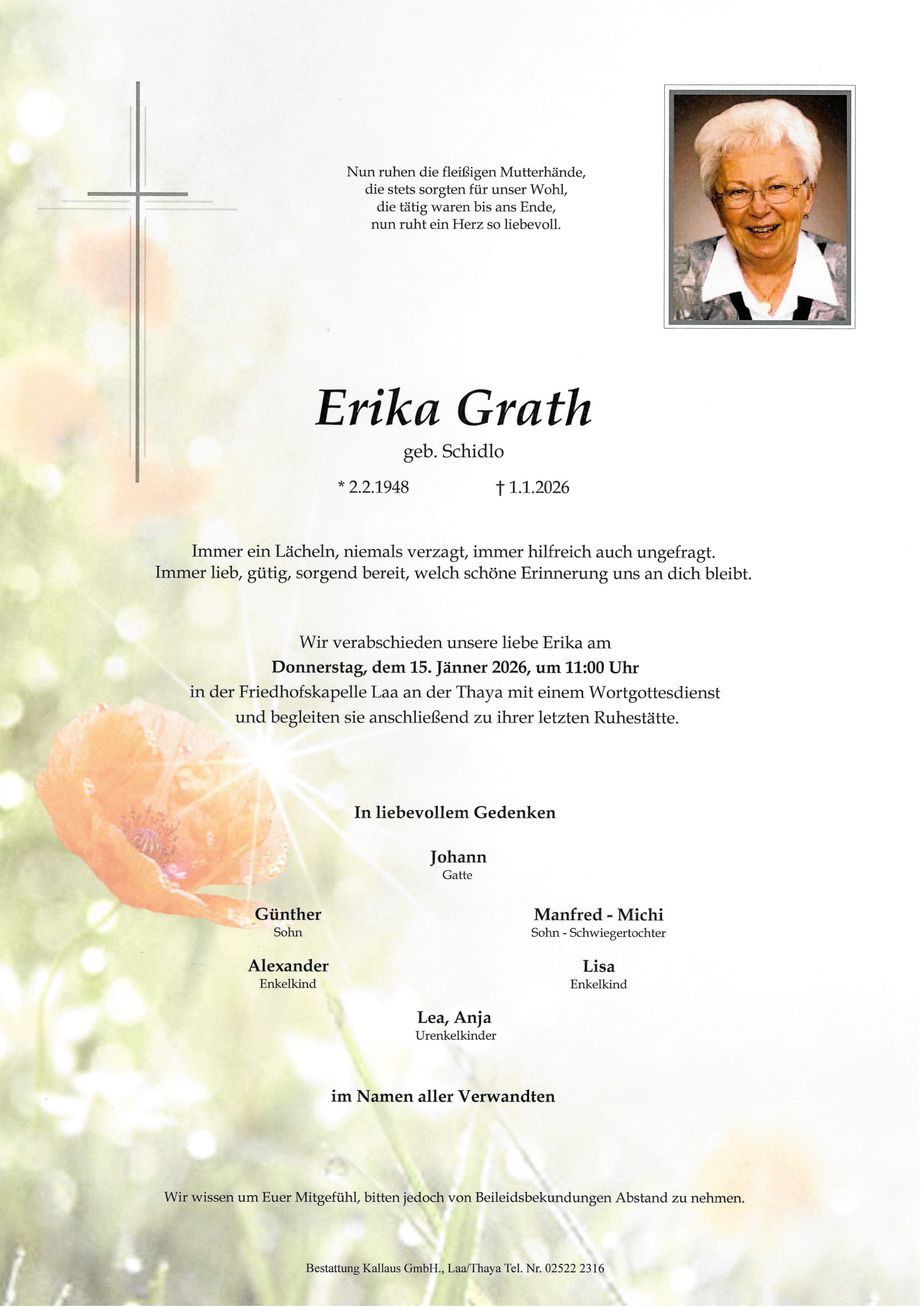 Unsere aufrichtige Anteilnahme und tiefstes Mitgefühl entbieten Michael Oberndorfer und Familie